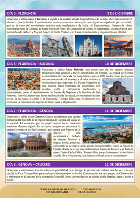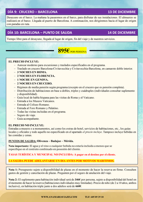 * 2 noches en crucero, 3 noches en Roma, 2 noches en Florencia, 1 noche en