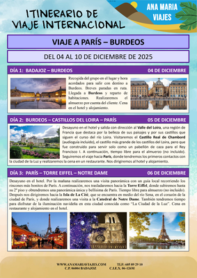 Para más información de este viaje u otras, llámanos o escríbenos un Whatsapp al 605892910 o mándanos un e-mail a anamariaviajes@hotmail.com y le atenderemos en el menor tiempo posible.